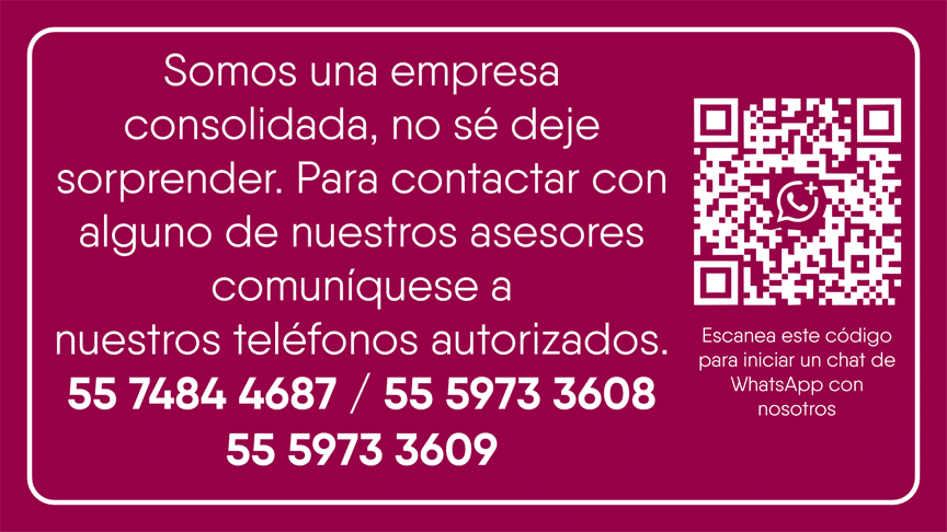 Para cualquier aclaración no dude en ponerse en contacto a través de nuestro correo electrónico atencionaclientes@jardinesdesantacruz.com o al teléfono 555-973-3608